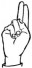 На ћирилици написано ПЕРИША КНЕЖЕВИЋ састоји се из 14 слова [?]. Исписано ћириличном једноручном азбуком за глувонеме: